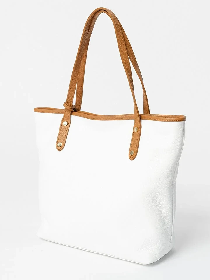 Bolsa Shopper em Couro Branco Grande com Alças Resistentes -