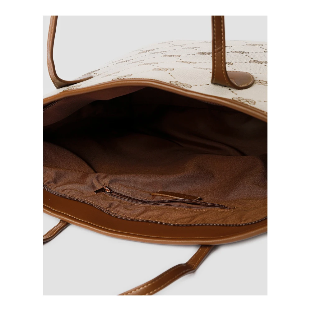 Com um design moderno e sofisticado, esta bolsa apresenta uma estampa elegante com padrão exclusivo, combinada com alças resistentes em tom camel, criando um contraste visual luxuoso e versátil que combina facilmente com diferentes looks.