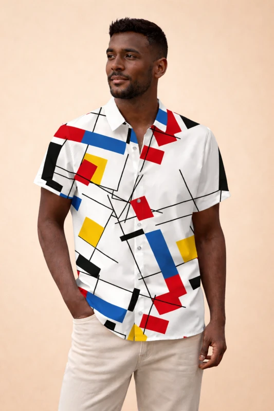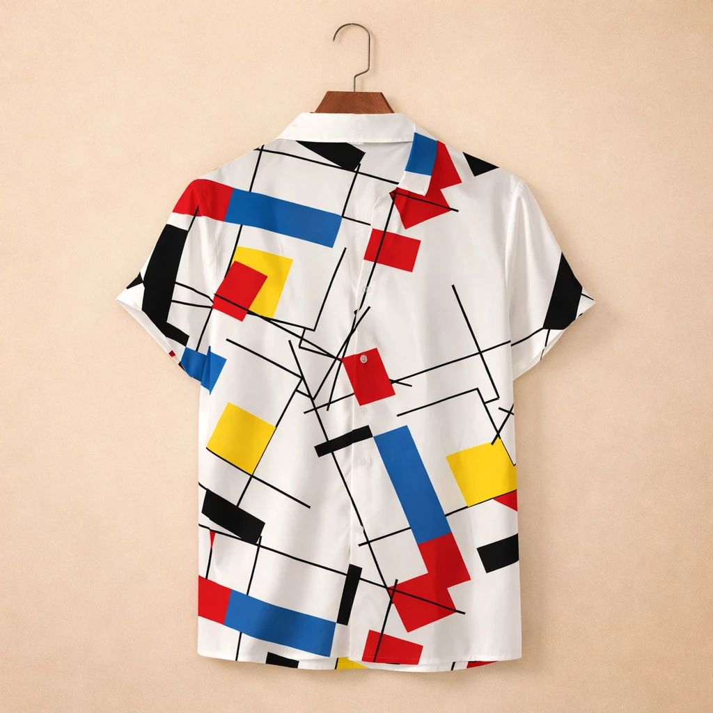 A Camisa Masculina Estampada Geométrica combina design artístico contemporâneo com leveza e versatilidade, sendo ideal para homens que valorizam estilo diferenciado e presença visual marcante.