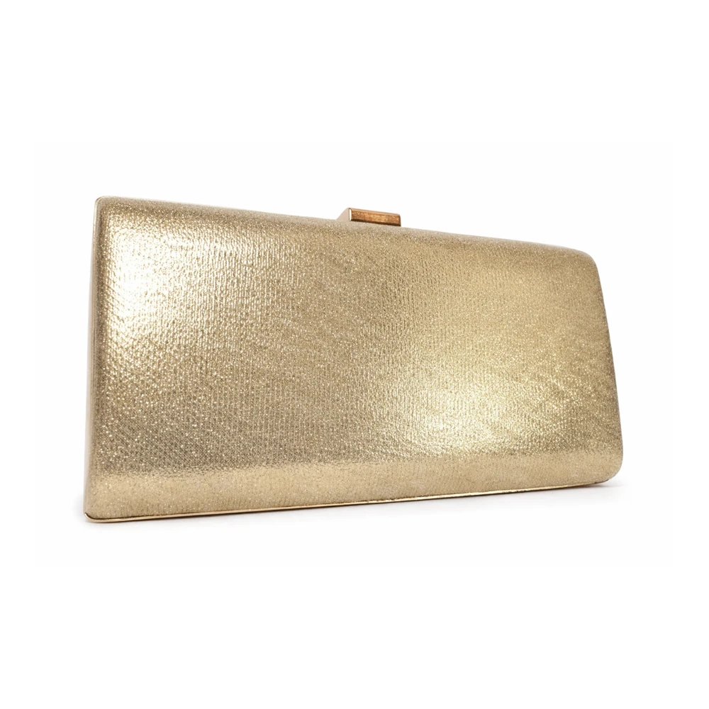Realce o seu look com esta clutch dourada sofisticada, perfeita para ocasiões especiais como casamentos, festas e eventos formais. Desenvolvida com couro sintético de alta qualidade com textura shimmer, esta peça combina elegância, brilho e praticidade num único acessório.