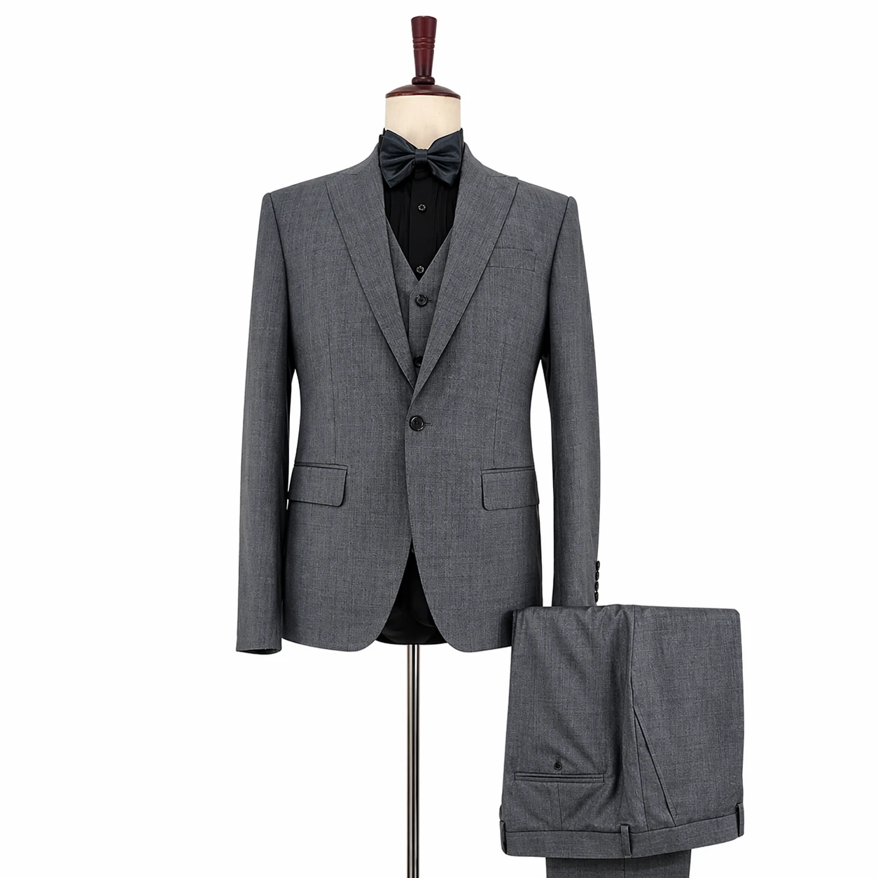 O design em tom cinza elegante combina perfeitamente com camisa preta e laço (bow tie), criando um visual refinado e marcante. Fabricado com tecido de alta qualidade, proporciona conforto, durabilidade e excelente caimento.