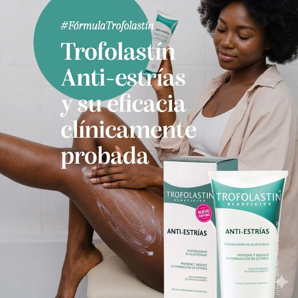 O Trofolastín Anti-estrias é um creme preventivo formulado para proteger a pele contra o aparecimento de estrias decorrentes da gravidez, processos de emagrecimento ou treinos desportivos intensos. Graças aos seus ingredientes ativos como a Centelha Asiática e o Colagénio, ele mantém a pele elástica e resistente aos estiramentos físicos e agressões bioquímicas. É indicado para todos os tipos de pele, possui fórmula hipoalergénica e deve ser aplicado duas vezes ao dia com uma massagem suave. Em caso de gravidez, o uso é recomendado a partir do segundo mês para garantir a máxima eficácia na barreira cutânea.