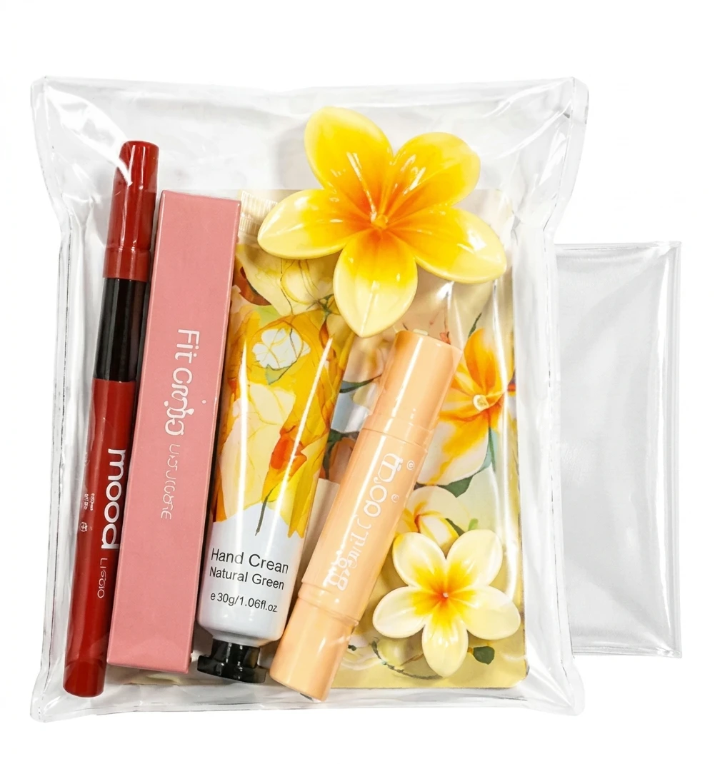 Perfeito para quem gosta de praticidade e estilo, este kit reúne produtos essenciais de maquiagem e cuidados pessoais em uma apresentação moderna e encantadora.