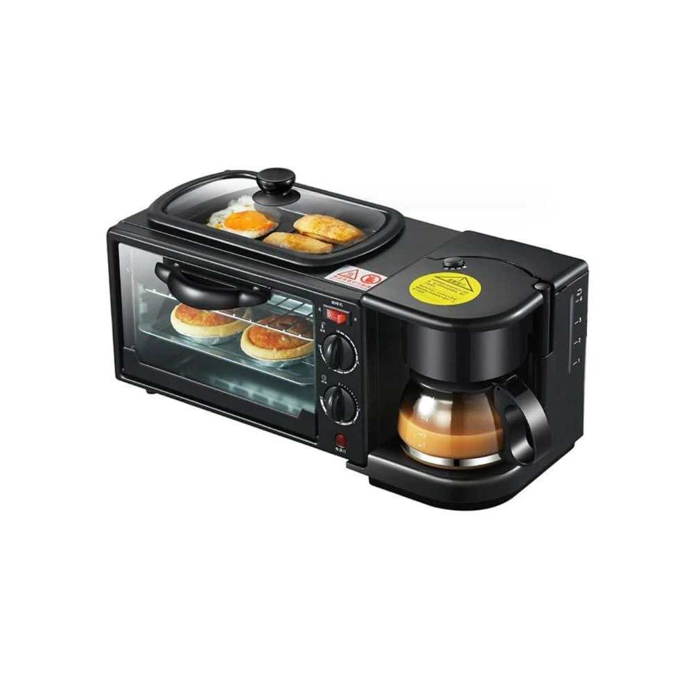 Máquina de Café da Manhã 3 em 1 Multifuncional com Forno, Cafeteira e Frigideira -