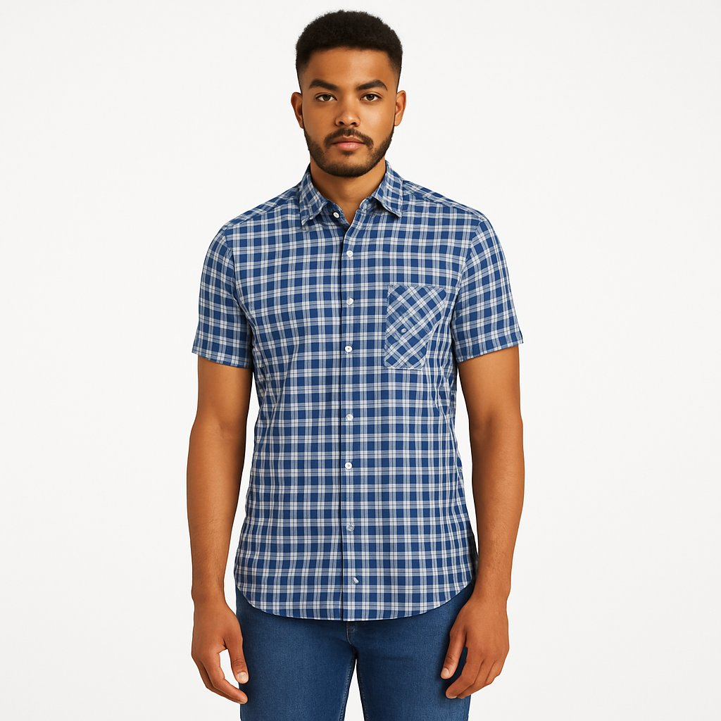 Men Slim Fit Checkered Spread Collar Casual Shirt