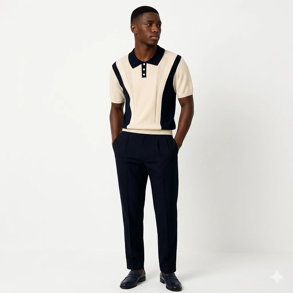 Eleve o seu estilo com esta polo masculina em tricot premium, perfeita para quem busca elegância com conforto no dia a dia.