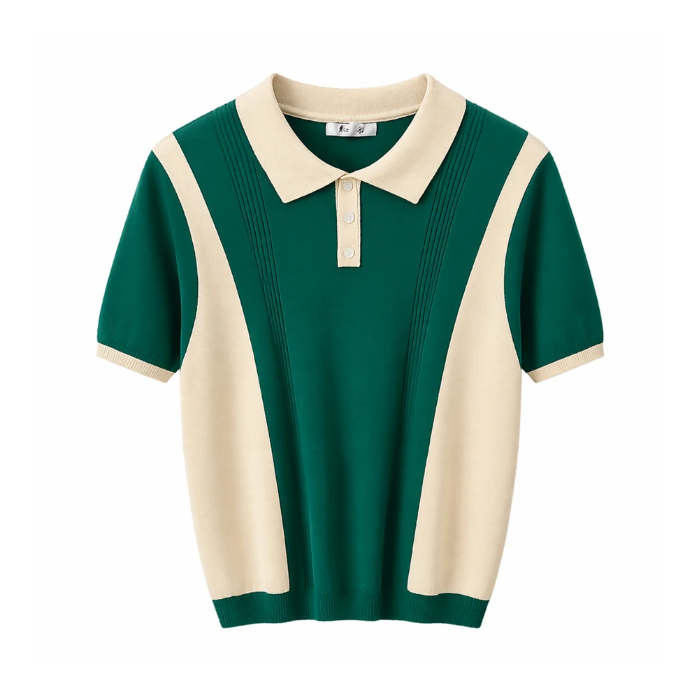 Polo Masculino Tricot Bicolor Premium (Verde & Bege)