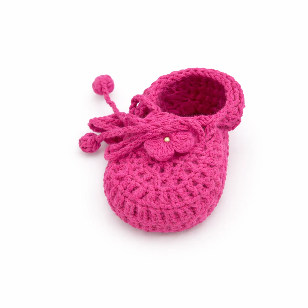 Delicado e confortável, este sapatinho de bebé em crochê é perfeito para manter os pezinhos do seu bebé aquecidos com muito estilo. Feito à mão com materiais macios e respiráveis, proporciona conforto durante todo o dia sem apertar ou incomodar.