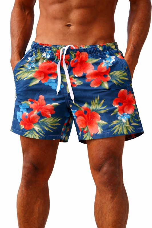 Short Masculino Tropical Floral Azul – Estilo Praia Premium -