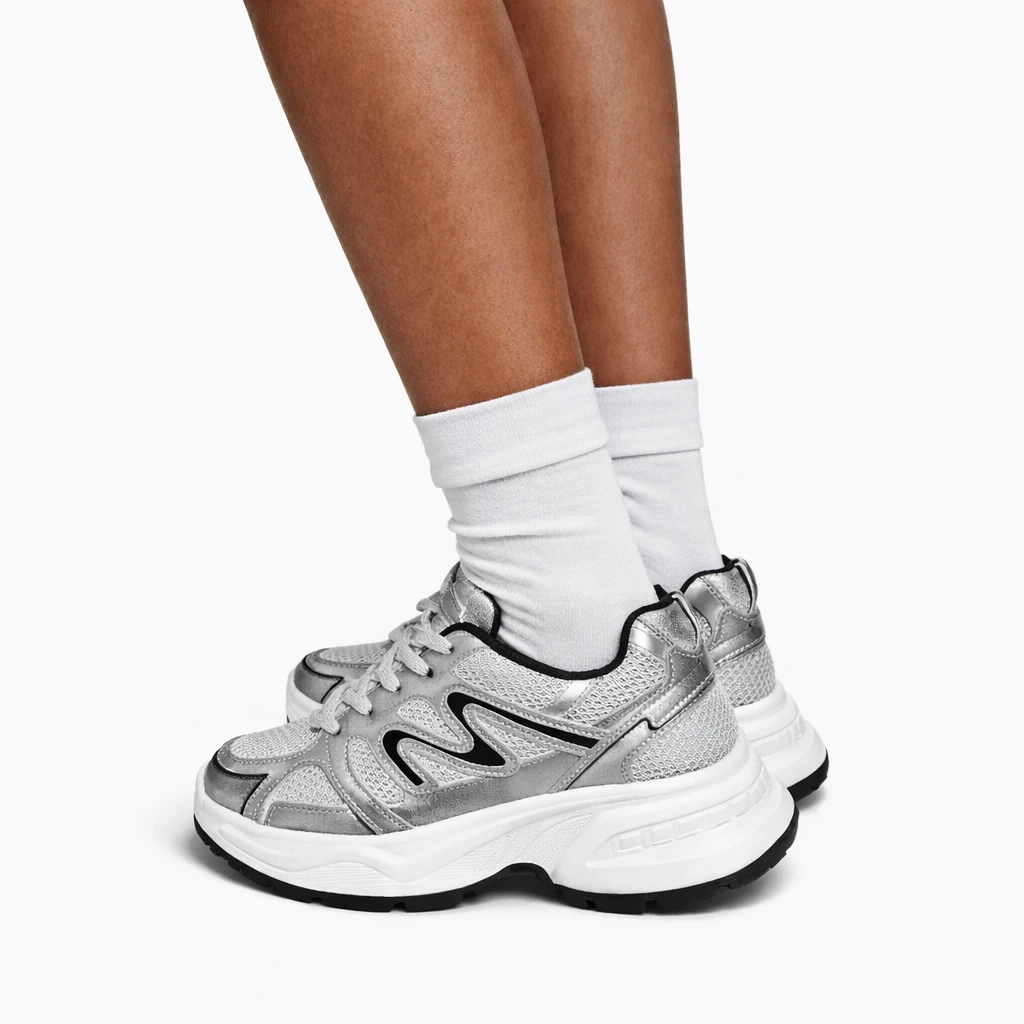 Mesmo sem identificação de marca visível, o estilo remete diretamente a modelos icónicos de marcas como New Balance e Nike, muito procurados pela estética “dad shoe” — tendência que continua em alta na moda streetwear.
