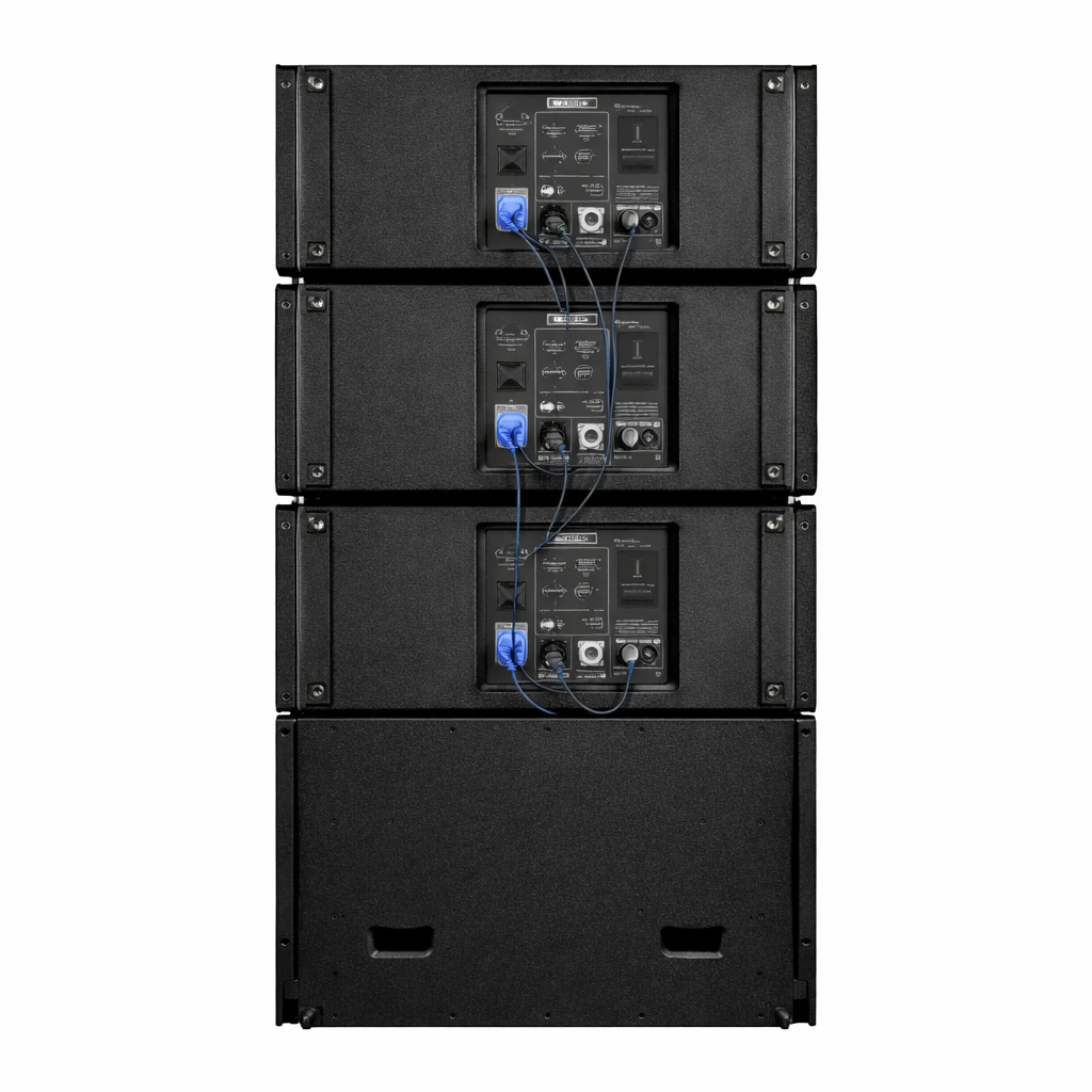 Sistema Line Array Profissional de Som (Colunas Empilhadas com Subwoofer)