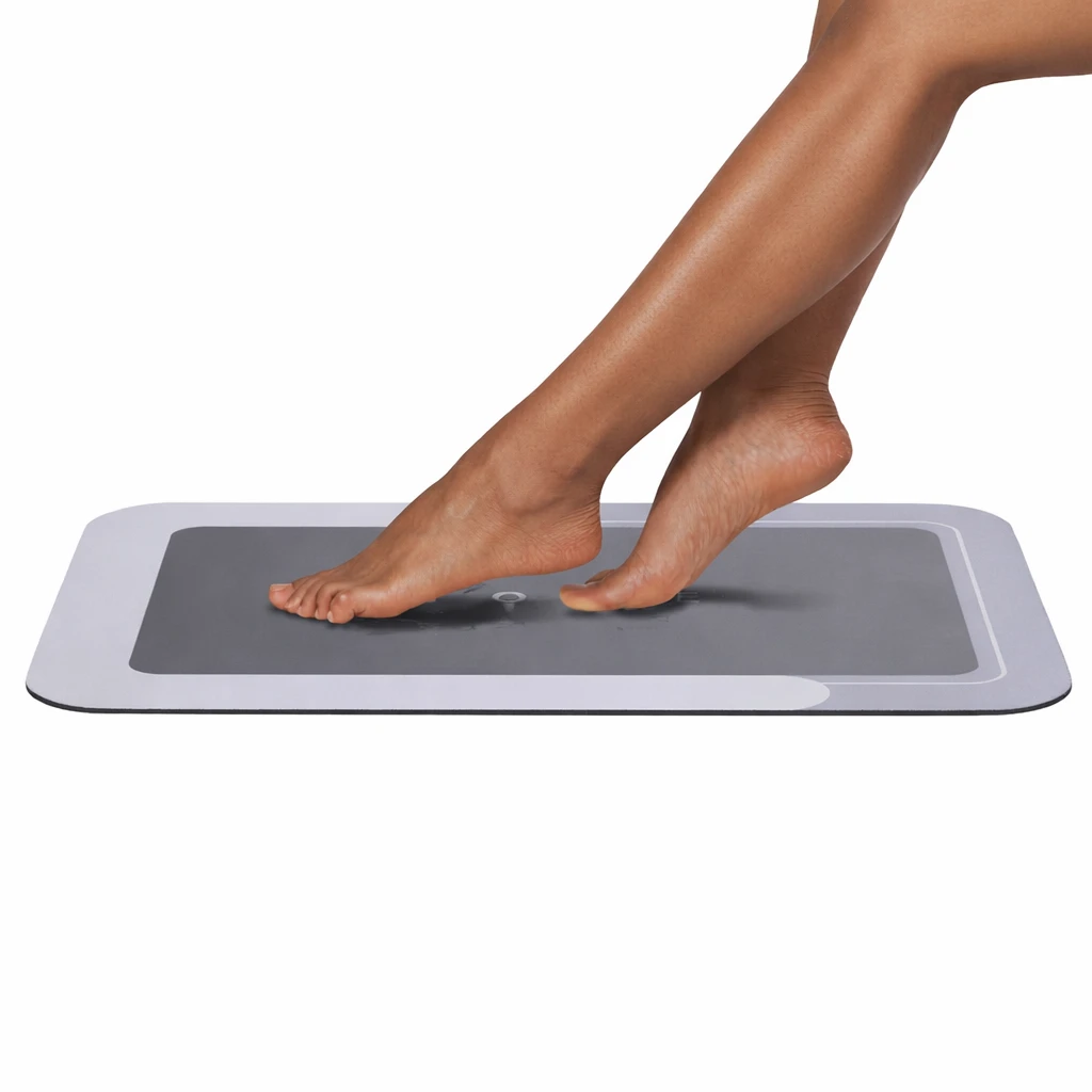 Graças à nanotecnologia com terra diatomácea, absorve a água instantaneamente e seca em poucos minutos — sem marcas ou humidade acumulada.